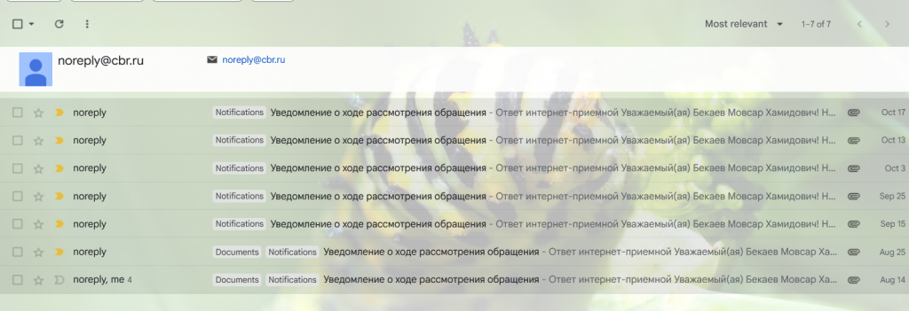 В итоге я написал в ЦБ ещё шесть писем и пару жалоб: